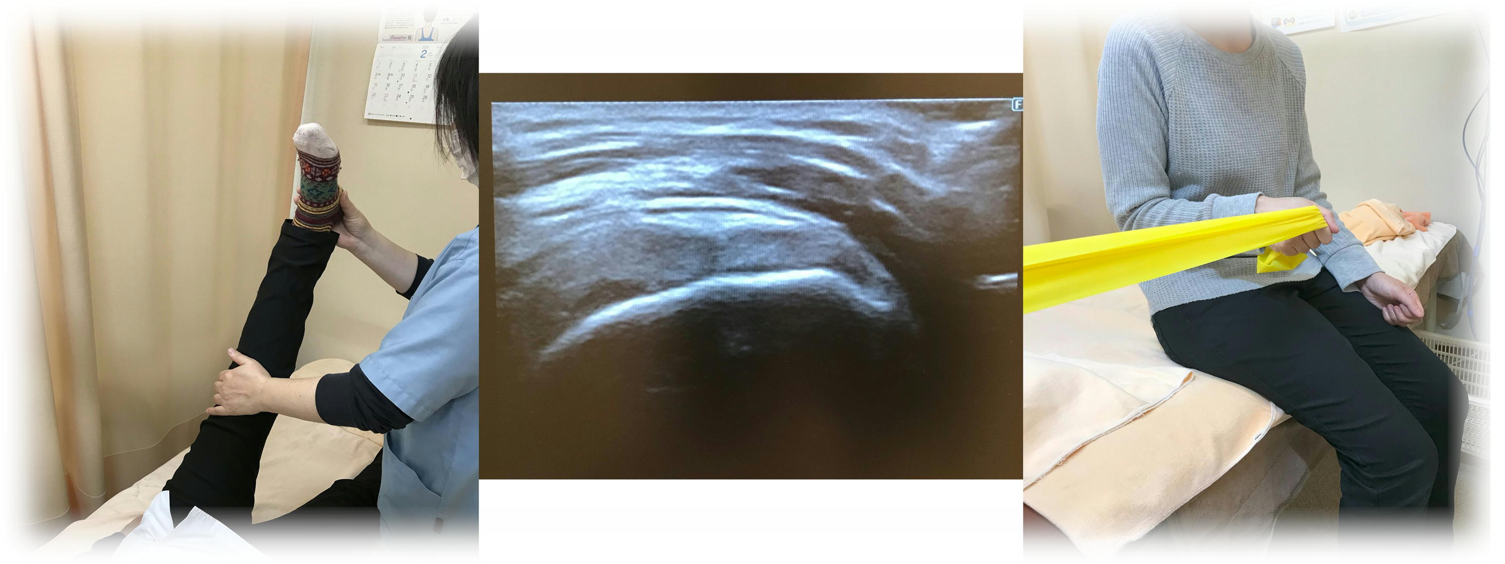 - 肩の腱板損傷の有無・膝の変形の具合など、エコーで確認しながら、今後の予防のために必要な事を、1人1人に合わせたメニューと施術でアドバイスを行っていきます。