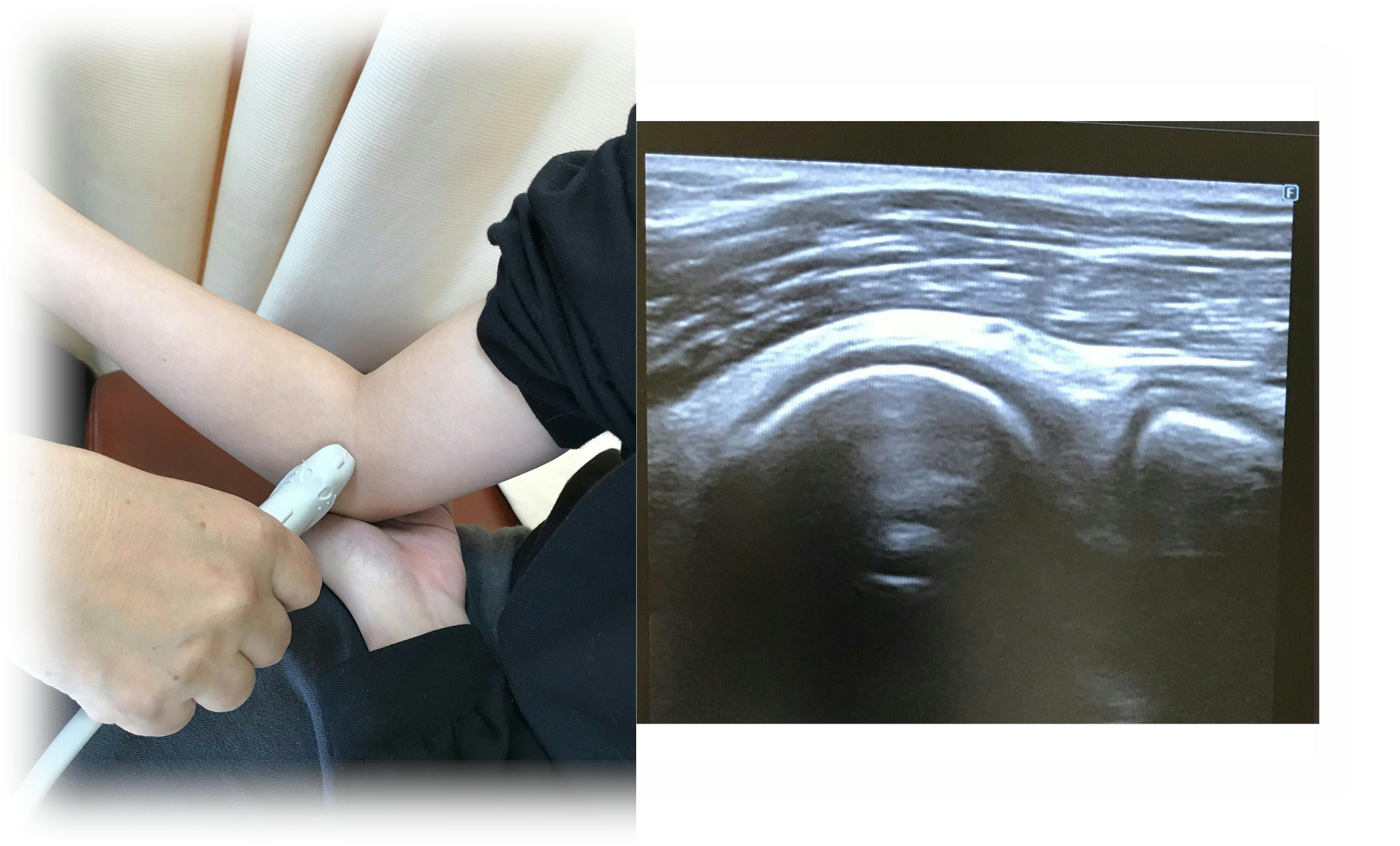 - 成長期は骨が柔らかいため、無理を続けると筋肉より「骨が」痛んでしまい、最悪「骨折」という事態に。そうなると、将来の競技人生に影響を及ぼす場合があります。そのため、こまめに肘の状態をチェックすることが大事です。肘の骨の状態をエコーでチェックして、確認していきます。